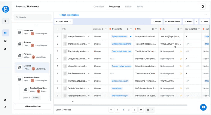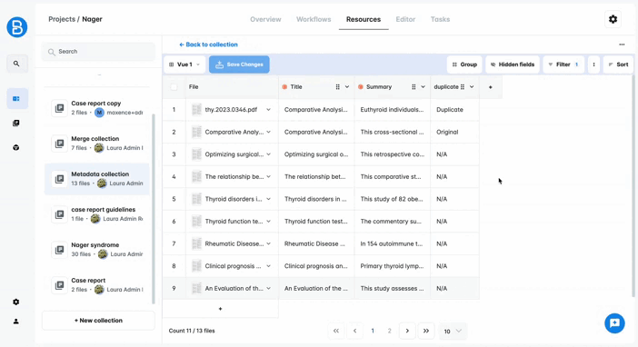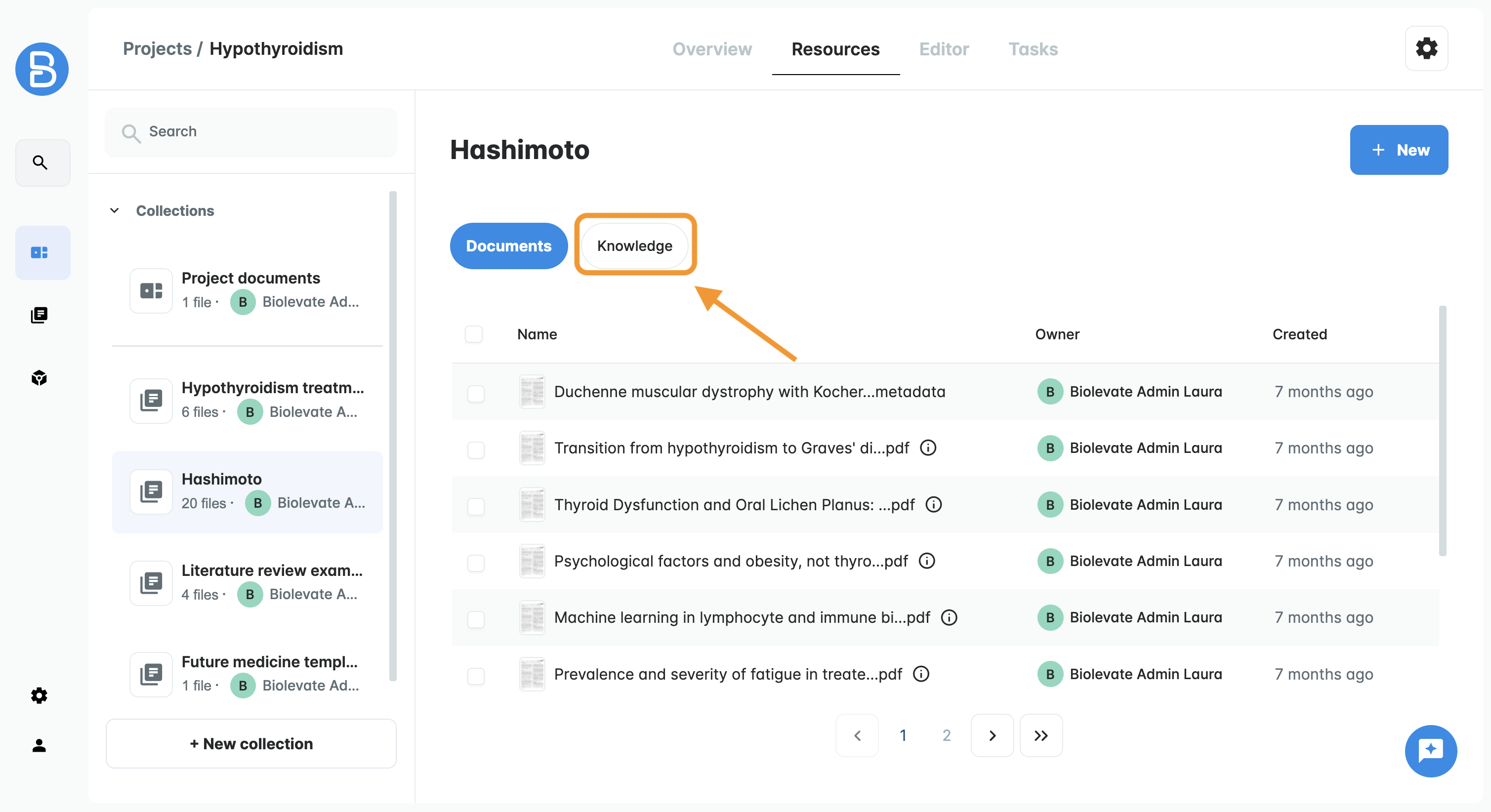 To access the table, go to your collection and click on the Knowledge button.