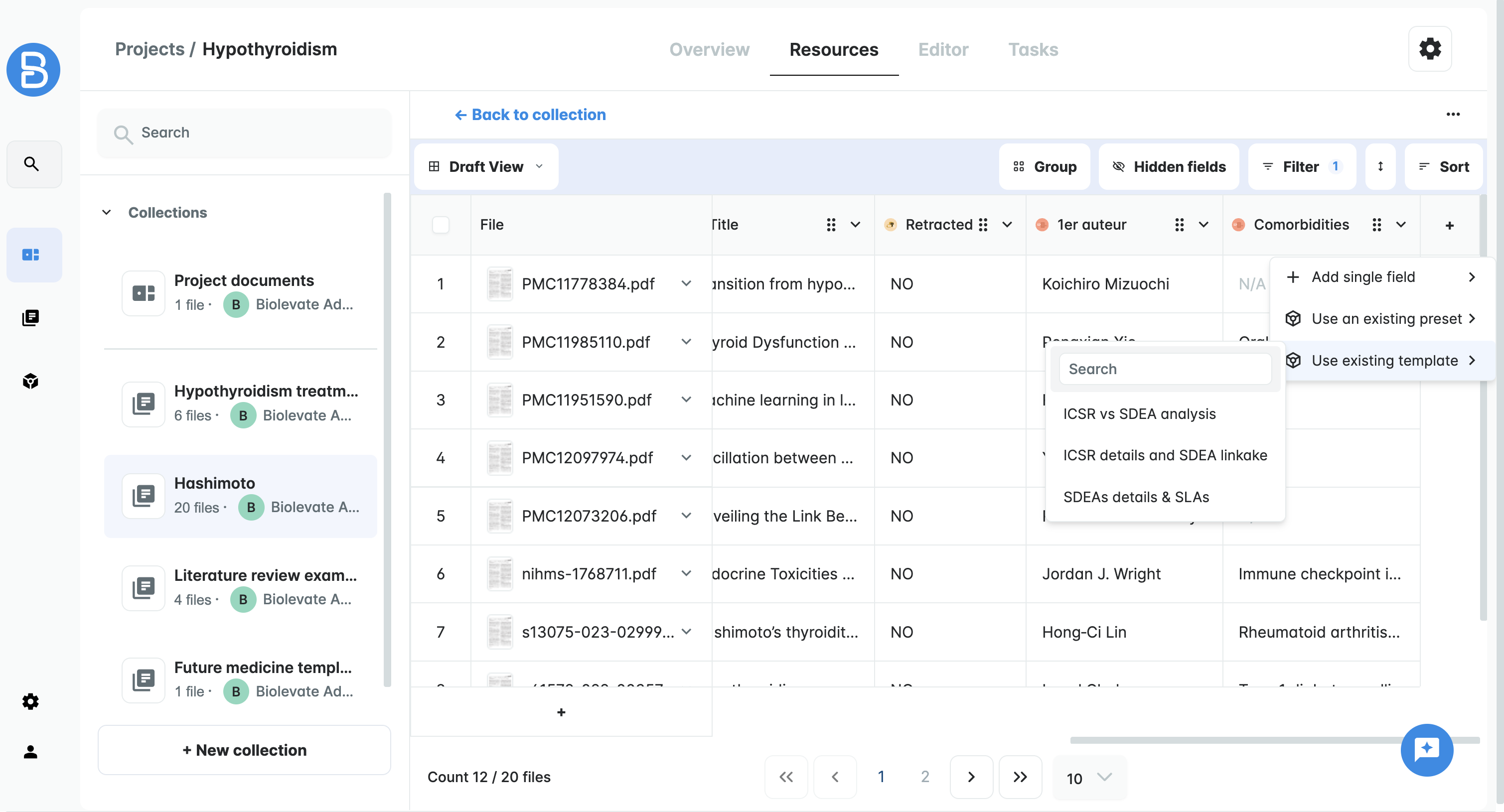 • the sub-collection is created with the "visible" files from the parent collection (i.e. not excluded through filters). It is also possible to copy fields (this is only a copy, it is not dynamic)