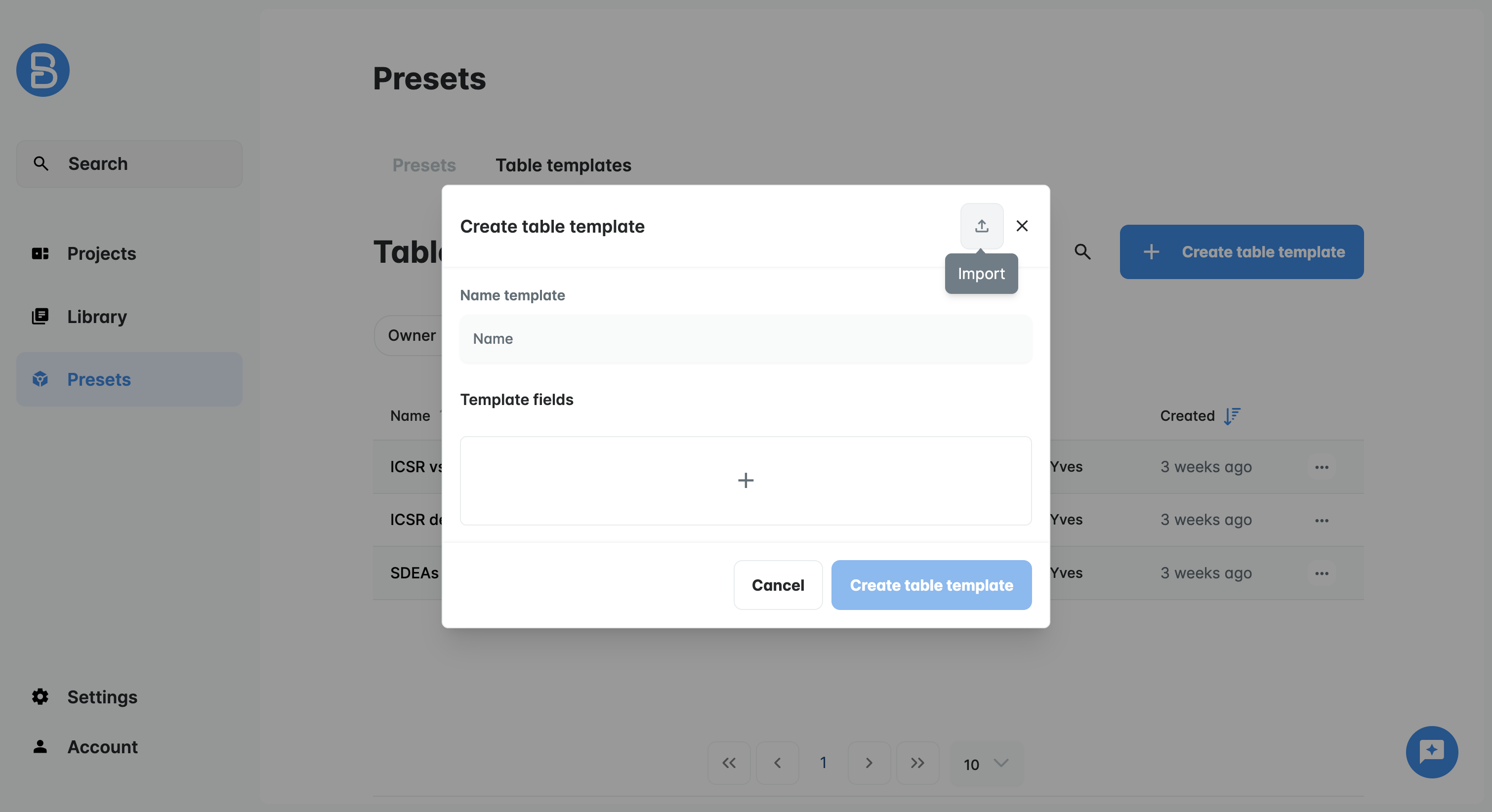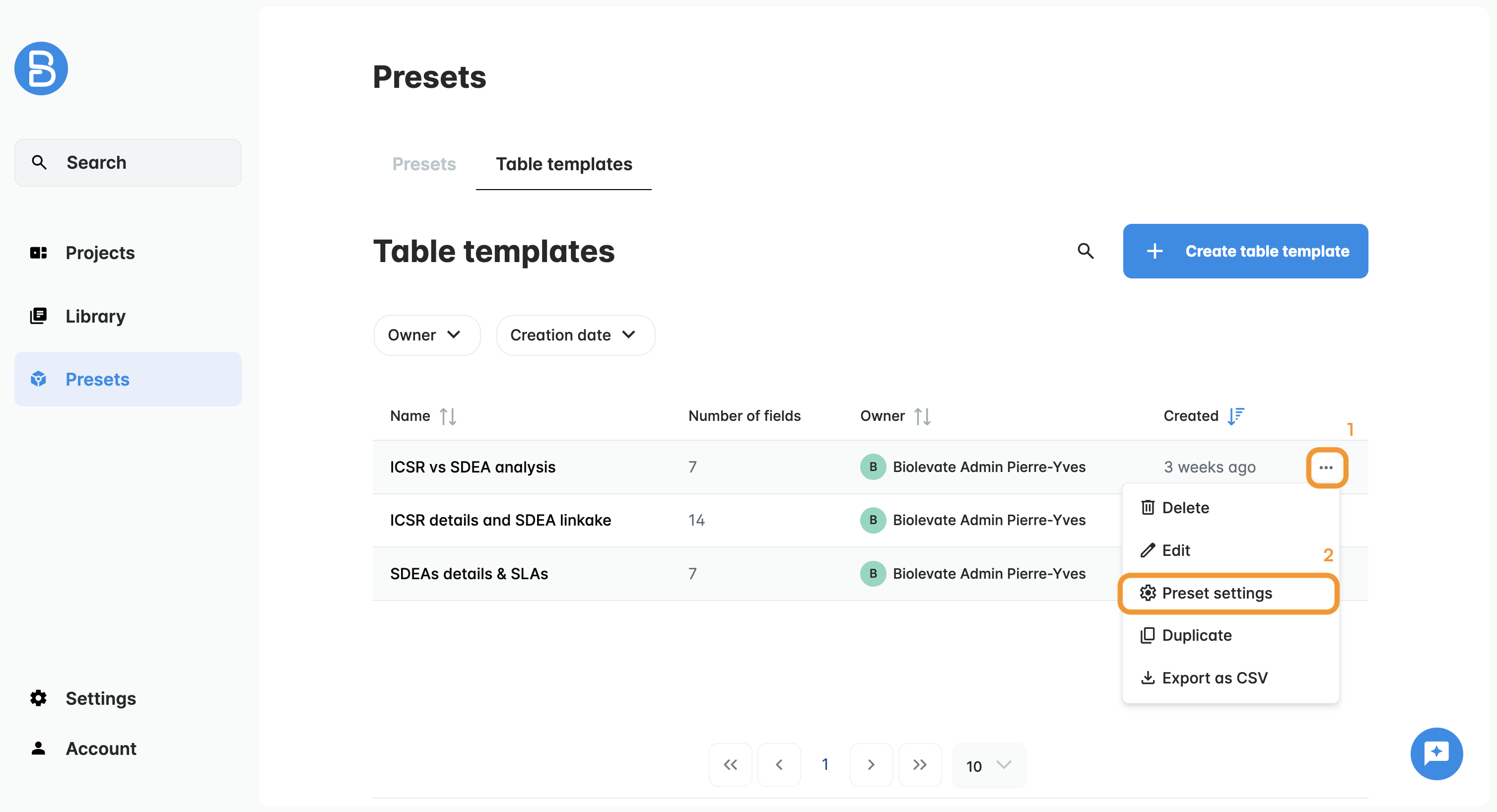 From the Table templates tab, you can see all the templates you have access to, meaning with at least READ access.