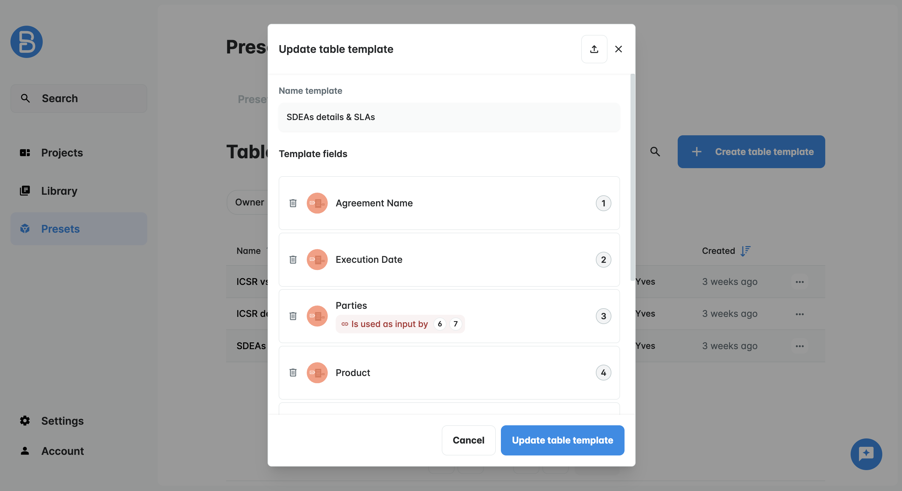 When created, a template is available from management in the table templates list and for use in any knowledge table.